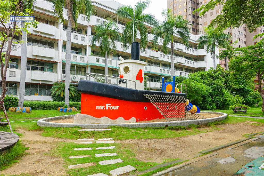 高雄苓雅區的四維國小有一座逗趣可愛的四維爺爺號,汽船造型兒童遊戲場,船下方...