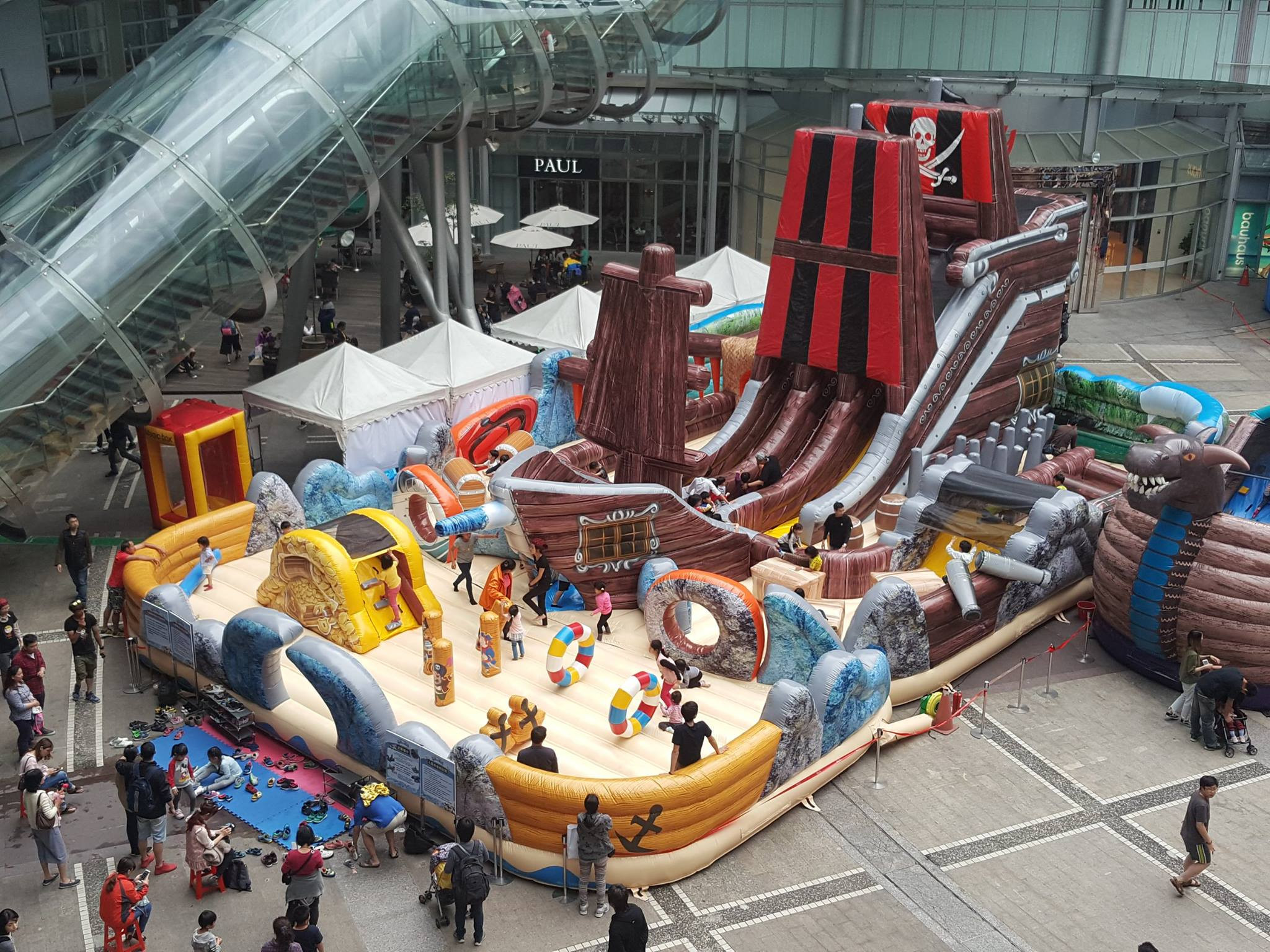 大型氣墊適合大一點的小朋友遊玩,小小孩則可選擇另外5座主題氣墊,可以耗去小朋友大量體力。活動期間假日下午還會有小海盜崴崴、娜娜出來與小朋友同樂。