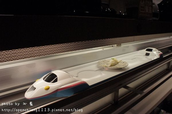 高雄目前是全台最大百坪店面,利用平板點餐,新幹線列車再以每分鐘50公尺的速度,直達座位送餐,小朋友們總不自覺受火車吸引,且點餐達300元可在平板玩小遊戲,贏了會送小獎品,為了這個小朋友還會多吃幾盤。