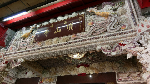 廟宇內內外外皆由貝殼裝飾,不論是天花板或廊柱都是,讓人嘆為觀止。