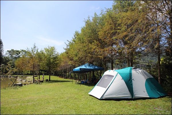 日月松林露營區位在南投縣魚池鄉,2017年10月開始營運,浪漫的落羽松步道環繞整個營地,柔軟的草地營位,加上生態魚池,充滿歐式渡假氣氛。