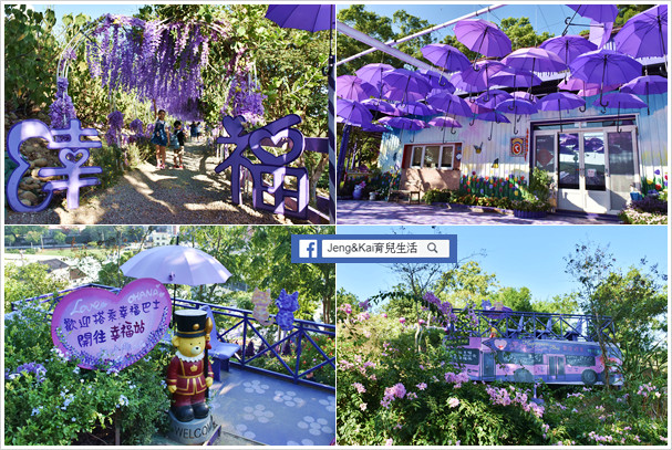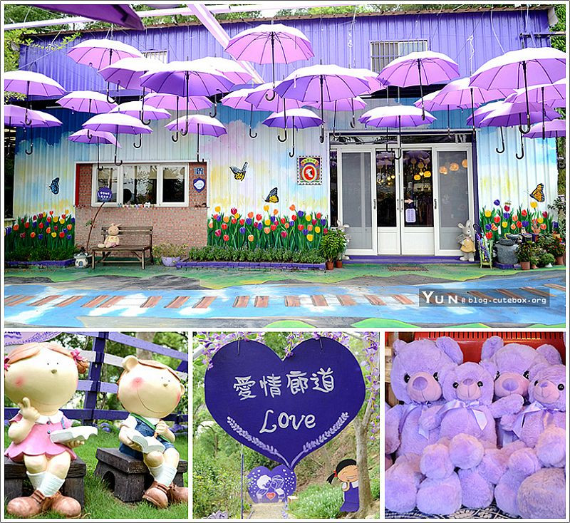 戶外有3D立體地景彩繪、大型鋼琴鍵盤彩繪、紫色愛情浪漫步道、紫色鋼琴、南瓜馬車、糖果屋等,整個園區都是浪漫紫色系,非常好拍照,裡面還養有2隻可愛的羊駝,記得帶小朋友去跟牠們說hello。
