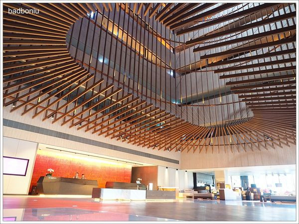 飯店大廳挑高有48公尺,塑造出整個飯店寬敞又氣派的裝潢風格,走入飯店大廳,每個人都會被上方巨大且高達12層樓的「豐收魚簍」竹製裝置藝術所吸引。