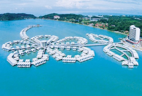 大紅花海上別墅是馬來西亞知名的海上渡假村,2015年開幕,飯店有自己的沙灘與海邊餐廳,客房則有酒店大樓房型與海上別墅二種,每間客房擁有20坪以上的寬敞空間,且房內都有私人泳池和蒸汽桑拿室,任何時刻都能悠閒的享受暢泳的樂趣。