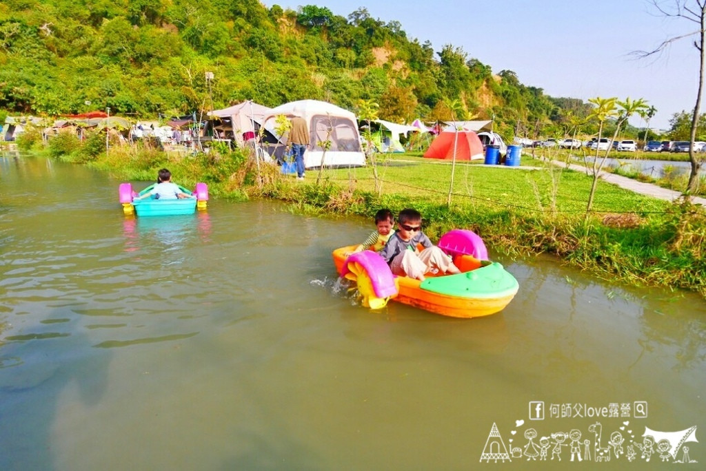 水映親子露營區位在台中市后里區,2017/05/01開始營運,營區佔地廣大,有專屬小朋友遊憩設施的大草皮空間,還有超大生態池,池上設有8座小島營位,最少只要3帳即可包島,體驗不同的露營風。