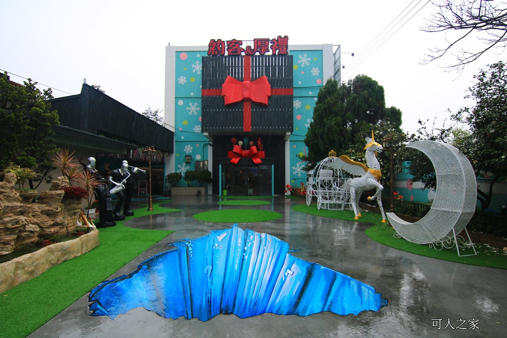 約客&厚禮 築夢手創館位在台中市后里,2018/01/05開始營運。手創館外觀是一大大的禮盒造型,大紅彩帶非常吸睛,館內、外有多樣好拍的造景、3D彩繪,這裡主要提供DIY手作活動,也有餐廳供應輕食餐點。