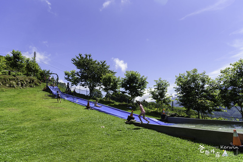 營主保留的遊戲區空間很大,超適合親子遊樂,有滑水道、戲水池、沙坑、九宮格與大積木,大片草地空間讓小朋友盡情奔跑釋放體力,是野放小朋友的好地方。
