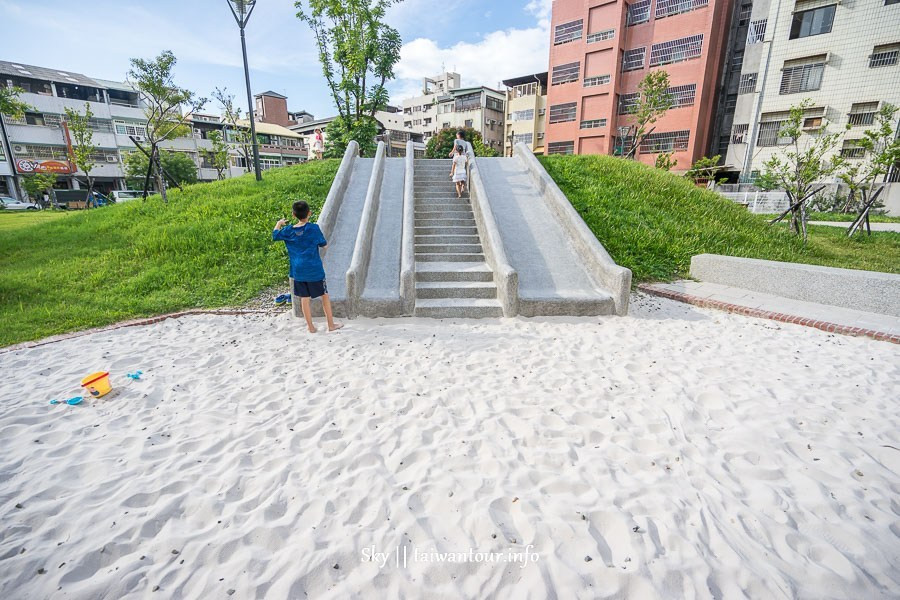 可以玩溜滑梯跟沙子,旁邊可以洗腳