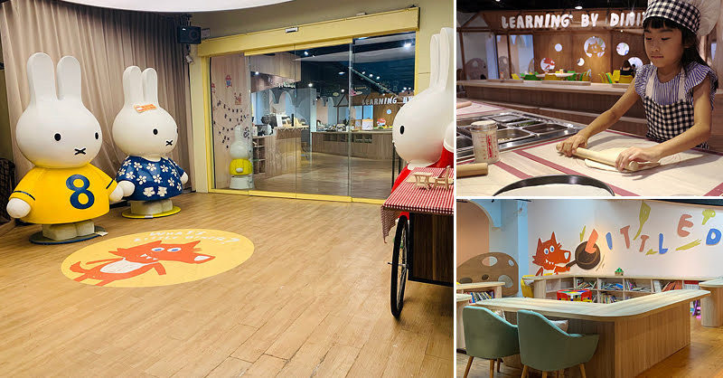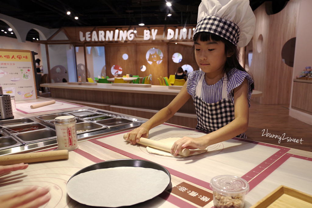 兒童遊戲區在內側,有繪本童書與多樣玩具,遊戲區外圍則是吧台式桌椅給家長休息。餐點有早午餐、義大利麵、兒童餐、商業午餐,體驗廚房假日14:30開始,有pizza、鬆餅2種選項。小食課另有開辦蛋糕甜點烘焙課程,有興趣的爸媽可上粉絲專頁查看報名。