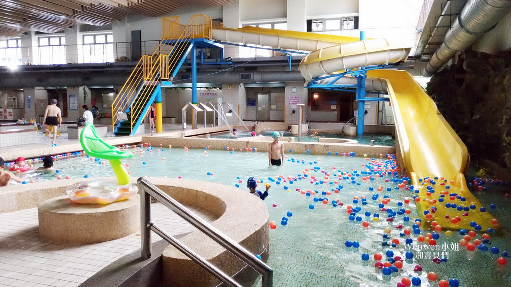 兒童池水深約60公分,池子上漂浮著彩色小球與小鴨鴨,小朋友都很喜歡追著小球玩。大型滑水道超過一層樓高度,有固定開放時段,滑下來的地方就在兒童池上,想要玩滑水道記得先確認時間來才不會錯過哦。