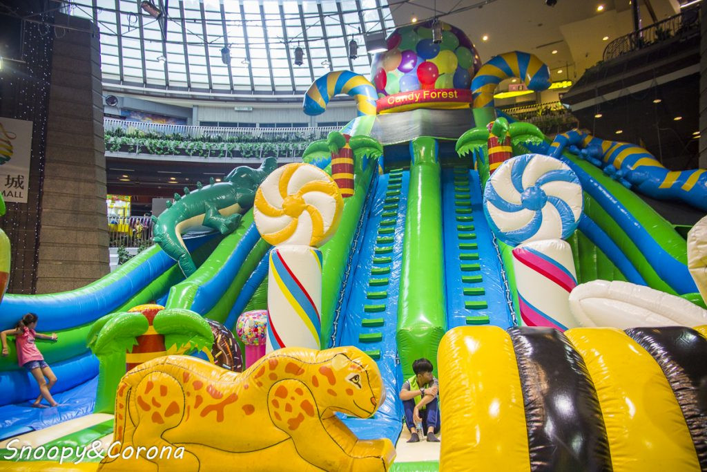 巨無霸氣墊-糖果魔法森林2019夏季移至台北圓山花博,可口的糖果魔法森林有世界最大爆米花氣墊迷宮,長18公尺、高9.5公尺,有大滑梯、障礙迷宮與跳跳床等,另外還有3座小型氣墊樂園,保證讓小朋友耗盡所有電力。