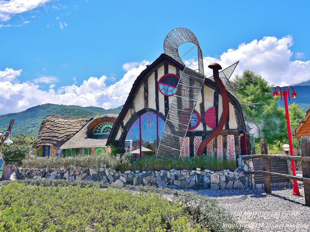 咖啡館是三間連棟不同外型的小屋,圓弧造型、凹凸不平的設計形成獨特的魅力,可愛的精靈小屋讓人拍不停。
