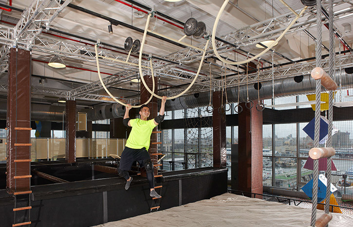 裡面佔地575坪,是全台灣最大的室內極限體挑戰空間,入場時需先用平板填寫資料,付費後會提供手環,會記錄挑戰過程與所消耗的熱量。