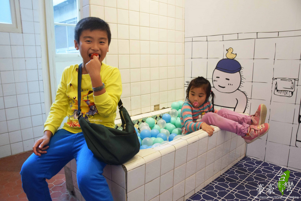 屋內的浴室彩繪著可愛圖案,可以讓小朋友拍拍照。