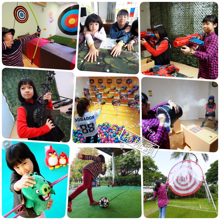 射擊關卡有趣又好玩,有多個籃球框的瘋狂投籃、用彈弓射擊憤怒鳥、使用動力槍射擊移動標靶、會噴煙的空氣砲與超巨大金屬射靶等,門票可玩館內關卡各一次,戶外另有可無限玩的射飛盤、足球與沙包等射擊遊戲。