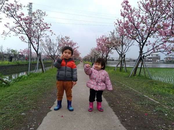 櫻花步道來回走約2公里,但一路上平坦易行,推車可以進入,走累了有石椅子可以坐著休息。
