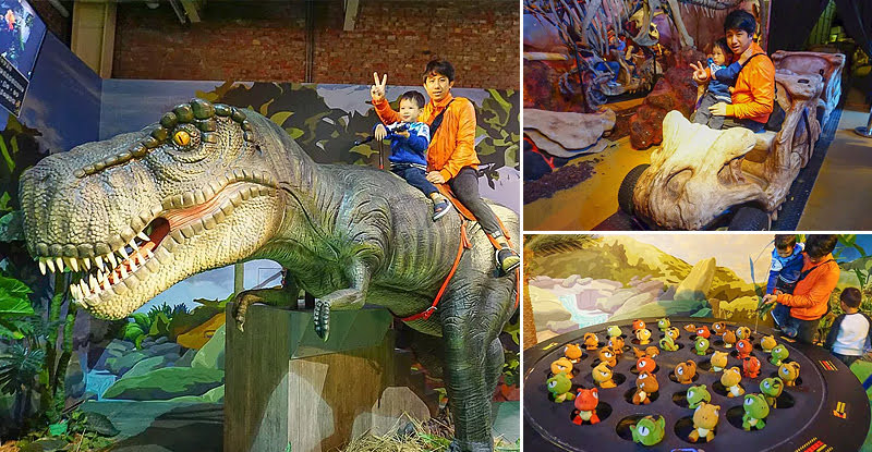 展場內也有互動設施,像是坐上暴龍、劍龍、副龍櫛龍等恐龍身上騎乘;拿起釣竿釣小恐龍玩偶、AR互動遊戲與抱小恐龍寶寶等,多了互動看展更有趣。