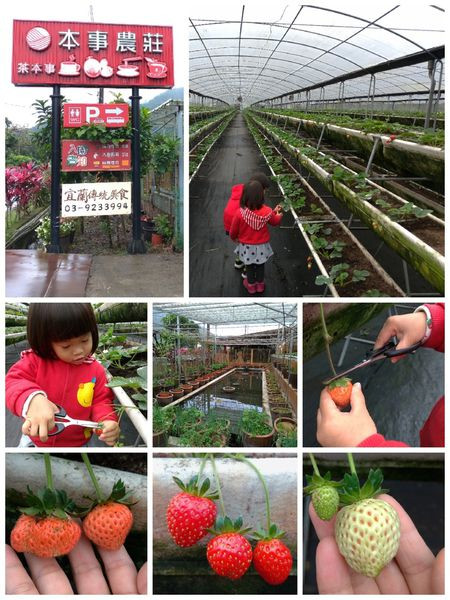本事農莊位在宜蘭礁溪,主要種植販售茶葉、小蕃茄、無花果、金棗、網瓜與草莓等果物,每年冬天草莓產季時也會開放遊客自採。