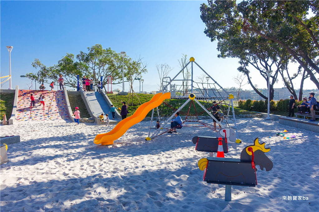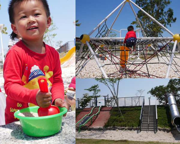 遊戲場旁有沖洗區方便爸媽幫小朋友洗淨手腳,也有公廁可使用。公園內特別設置觀景台,可以在這裡看飛機呼嘯而過,也可欣賞公園景觀。