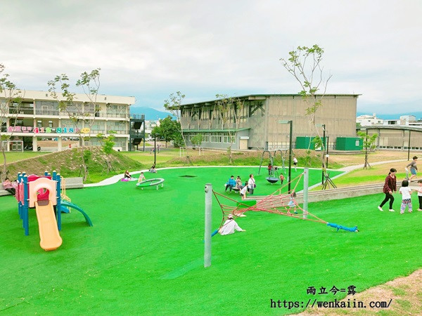 兒童遊戲場不算大,但新穎的遊具可以讓小朋友玩上一陣子,有一般的塑製溜滑梯、長短二道磨石子滑梯、極限飛輪、立體攀爬網、多人旋轉杯、單人旋轉杯、鳥巢鞦韆與彈跳床等。