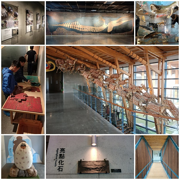 裡面分為5大展館,有豐富的本土化石展示,像是中國犀、猛獁象、劍齒象、古鹿、鱷魚、貝類等生物化石與解說,帶領大家認識台灣遠古生態環境,其間有VR與多樣互動體驗,還可以看到考古人員清修化石的工作實景。