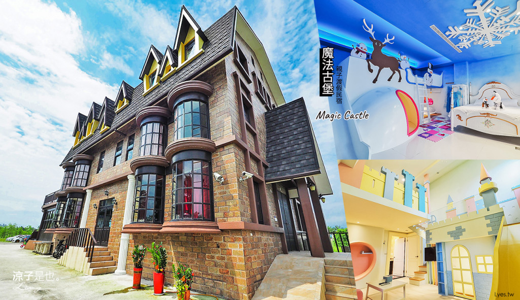 魔法古堡親子渡假民宿外觀是一棟漂亮的歐式古堡,非常吸引人,地點就在宜蘭傳藝大橋旁,2019/02/09開始營運,整棟民宿內外都很有質感,仿佛進入哈利波特的世界。大人忙拍照時,小朋友有遊戲區可以玩,且房內也有溜滑梯與玩具。