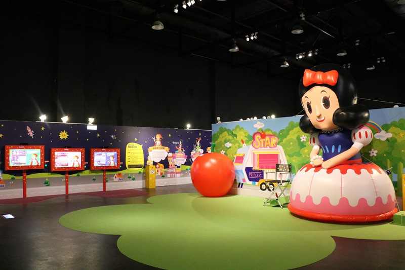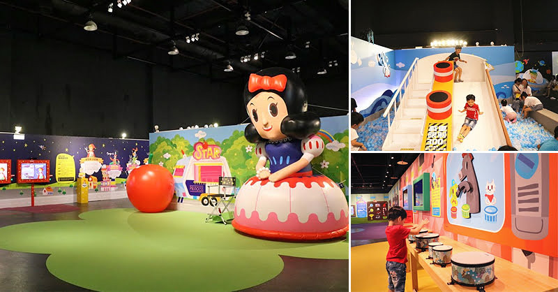 場內分為6大主題區,可以看到白雪公主、彼得潘、青蛙王子、大野狼等知名的童話角色,裝飾的繽紛活潑,互動拍照、音效按鈕、音符地板...等互動設施讓小朋友玩不停,還有溜滑梯球池可以玩。