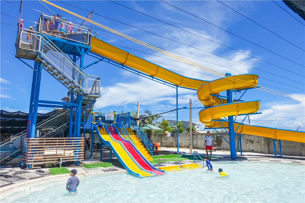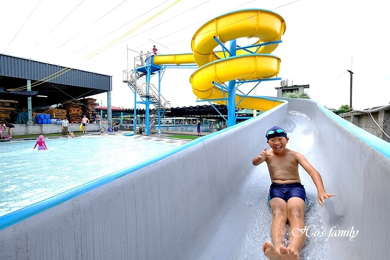 泳池於2019年進行整修,並於06/01重新開放,入口處繪上小朋友愛的角落生物彩繪牆,泳池區也變的更乾淨,裡面分為標準池、中池與兒童池,上方都設有遮陽簾,兒童池有一座近3層樓高的滑水道,與二道瀑布溜滑梯;沒辦法玩滑水道的小小孩,園區還有特別使用可愛的充氣戲水墊並提供小球小玩具給小寶貝玩哦。
