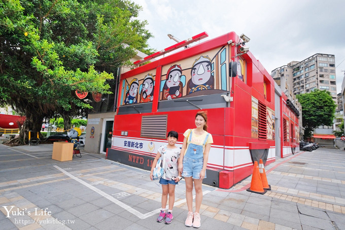 位在新北市淡水的滬尾消防分隊,2019/07/05打造親子防災宣導主題館,館外彩繪成巨大消防車造型,很好拍,館內分為「沉浸式投影互動遊戲、VR實境互動遊戲」主題區,讓小朋友在遊玩中學得消防知識。