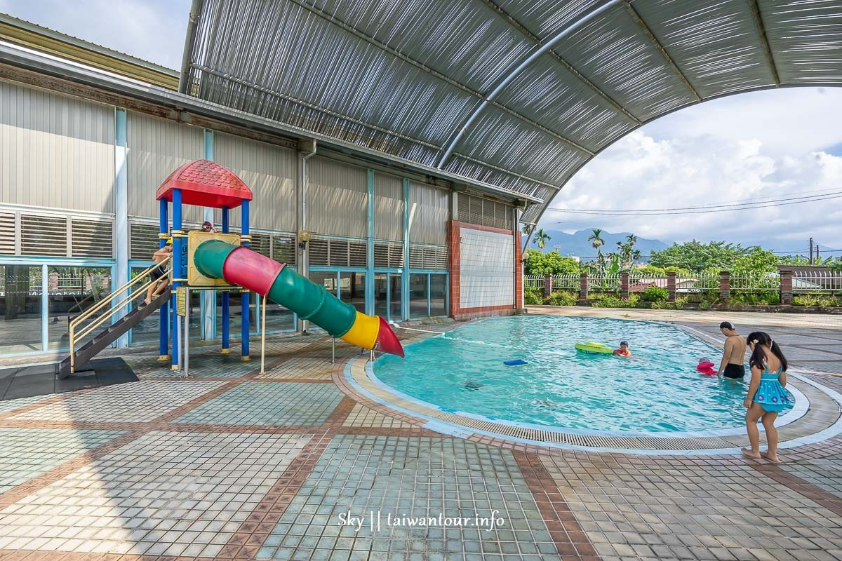 游泳池裡有戶外50公尺長、8道泳道,另一側則有給小朋友玩的溜滑梯戲水池,室內還有SPA池、冷水池、烤箱與蒸氣室。泳池與戲水池在戶外,但都設有遮陽簾與遮陽棚,夏天來玩不怕晒。