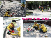 沙坑內還有獨木橋、挖土機等遊具,一旁有鳥巢鞦韆、多人鞦韆、多人旋轉盤、恐龍造型磨石子溜滑梯、立體攀爬架、搖搖馬、幼兒滑梯等,還有大片草地空間可以讓小朋友跑跳。英才兒童公園內,還有一個婦幼館,家裡有6歲以下的小朋友,也可以進去看看。