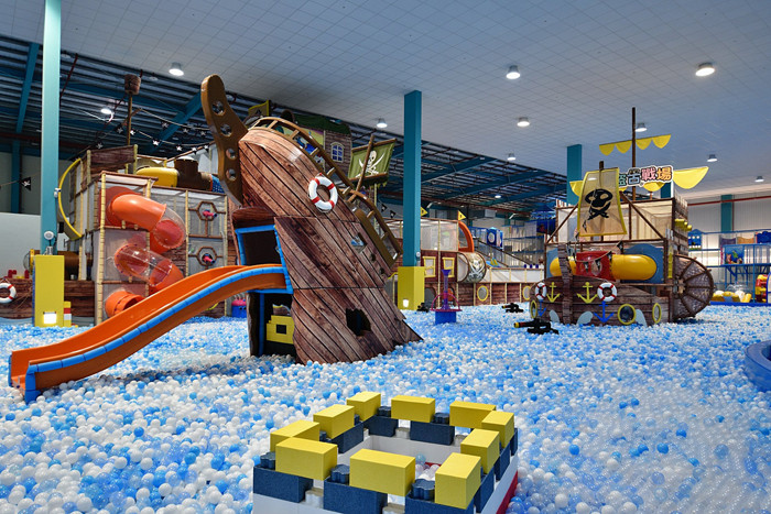 鯨奇海洋館適合3歲以上兒童遊玩,裡面又分為5大區域。第1區-海盜古戰場,是仿大海的大型溜滑梯球池,球池上有海盜船、溜滑梯、立體闖關迷宮、旋轉溜滑梯等。
