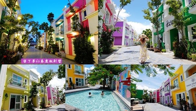 墾丁夢幻島度假別墅座落在恆春鎮上,2019年初開始營運,裡面是由14棟彩色屋串連而成,馬卡龍粉嫩色彩充滿異國風情,仿佛來到威尼斯布拉諾島,是熱門拍照景點之一。