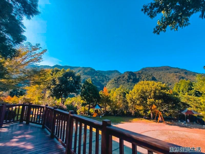 營地有給小朋友的活動區,桐花廣場空間寬敞,可以在這裡玩球或是泡泡水,周邊設有戲沙坑、盪鞦韆與溜滑梯遊戲組,且上方有遮陽棚為小朋友擋住熱辣的陽光。