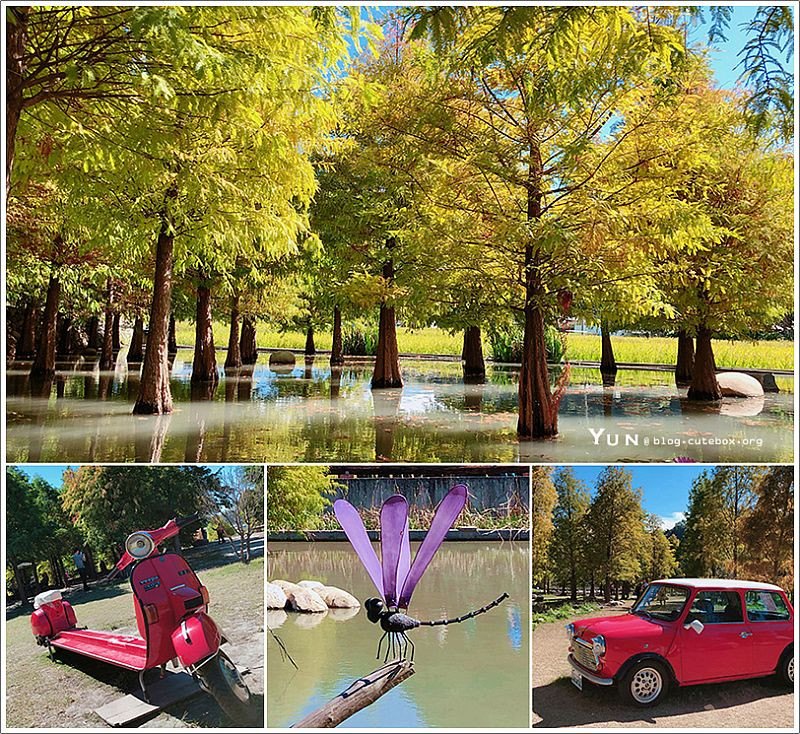羽粼落羽松是台中人氣賞落羽松景點之一,成排的落羽松充滿歐洲風情,不論是綠色或是轉黃成紅之時,都很迷人,且園區內還設置不少拍照區,讓大家拍個夠。