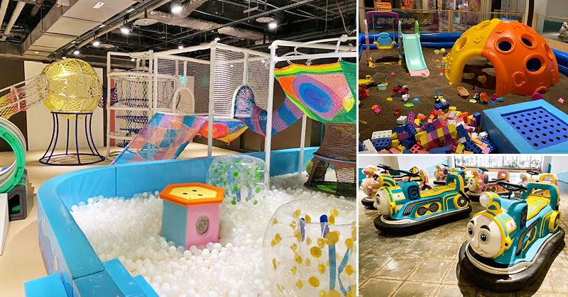 場內適合2-12歲小朋友遊玩,有大型海洋風溜滑梯球池、彩虹繩網攀爬遊戲區、決明子沙坑、益智大型積木、動力沙桌、益智積木桌、碰碰小火車等。
