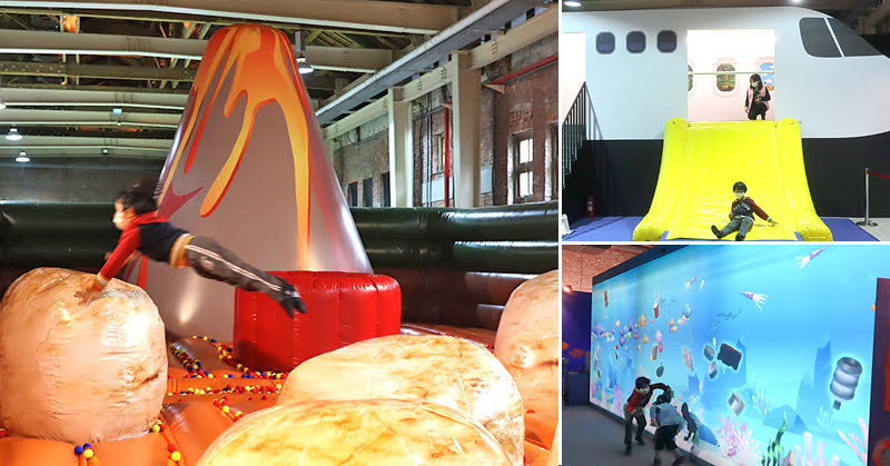 遊樂設施有火山氣墊床、海底互動投影遊戲牆、投擲闖關、快爬沼澤等。玩累了可以先出去休息或用餐,出場前蓋手章可再重複入場,華山文創園區與周邊都有很多店家與餐廳,逛街用餐很便利。