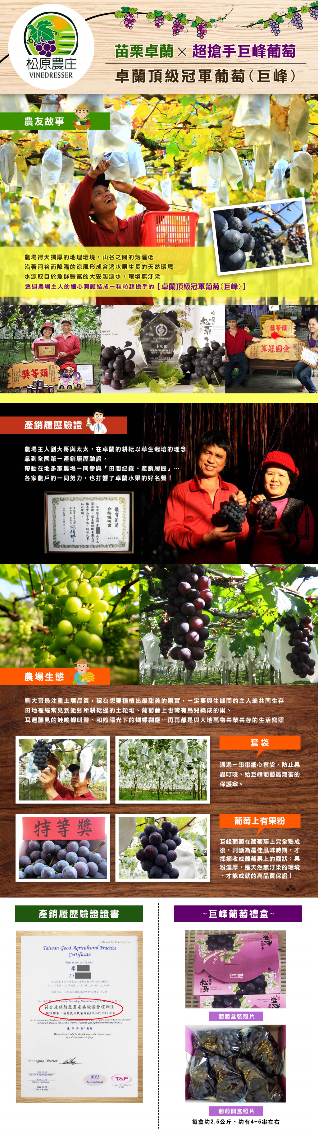 農庄的葡萄曾獲得全國葡萄評鑑冠軍,果肉紮實,甜度十足,結實纍纍、飽滿的葡萄讓人垂涎,小朋友也很喜愛呢。