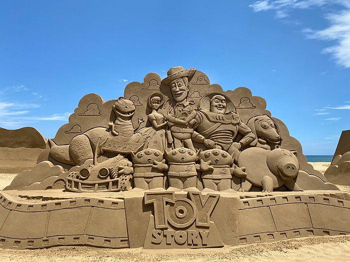 重溫皮克斯經典裡共展示18座沙雕作品,有玩具總動員、怪獸大學、天外奇蹟、靈魂急轉彎、海底總動員等經典電影場景,熟悉的角色就出現在沙雕作品上,又是小朋友愛的卡通角色,更是吸引人。