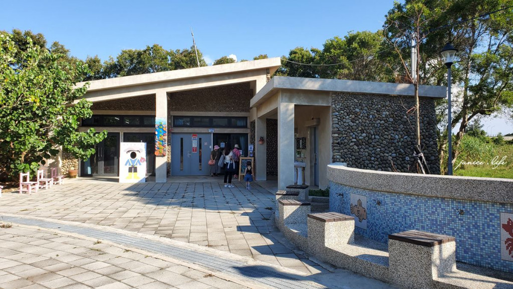 若沒有參加導覽,離這裡約3分鐘車程的「桃園市動物保護園區」前有大片的沙灘海岸線,也可以看到藻礁地形。小朋友在這裡踩水玩沙、尋找寄居蟹等小生物,爸媽看風景也很愜意,結束後可回環境教室沖洗手腳,入口處前有沖洗區給大家使用。