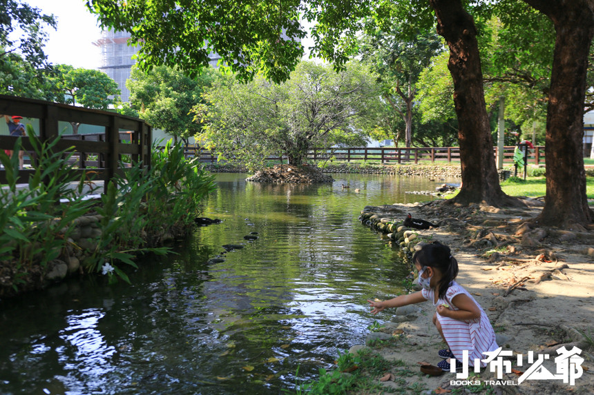 生態池內有許多魚兒可以餵飼料,也可以看到鴨、鵝在池邊散步。假日就帶上野餐墊,在樹下乘涼、遛小孩,度過悠閒的親子時光。