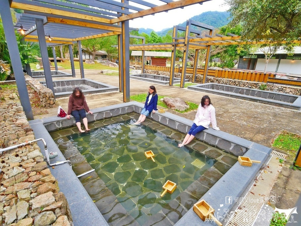 農場提供自搭帳,有草地、木棧板、雨棚,獨立湯屋是雨棚營位,有自己的泡湯池與衛浴空間,非常舒適。露天風呂共有6座泡湯池,每座約可容納12人左右,泉質為碳酸氫鈉泉,清澈透明,泡完整個身心都舒暢了。