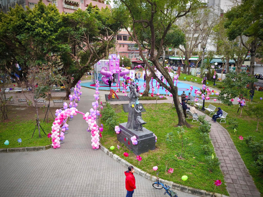 公園遊戲場於2020年進行改造,並於2021/01/12正式啟用。全新的遊戲場以浪漫的粉紅色彩為主軸,打造一座可愛的粉色城堡溜滑梯攀爬遊具,有攀岩牆、旋轉樓梯、益智玩具及2個旋轉滑道。