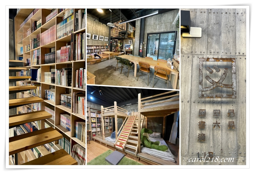 晃晃46図書適位在台東市區,民宿主人主要經營二手書店,打造的民宿也充滿書香味,裡面滿滿的書本任你取閱,房內也有書櫃,且其中一間四人房在2021年11月改造成溜滑梯房型,還能滿足小朋友的遊玩樂趣。