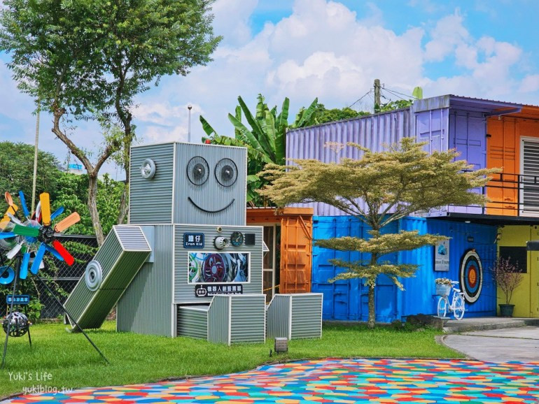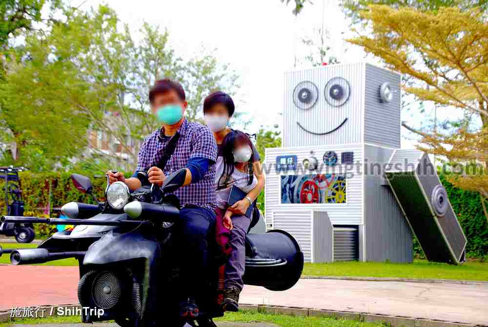 園區內分為室內機器人展區與戶外庭園裝置藝術,機器機人展區裡展示超過30組戰機系列作品以及20多個小型機器人,有指揮戰艦、機器戰警、轟炸戰機等,細緻的作品讓人驚嘆,無法想像是由廢棄零件做出來的。