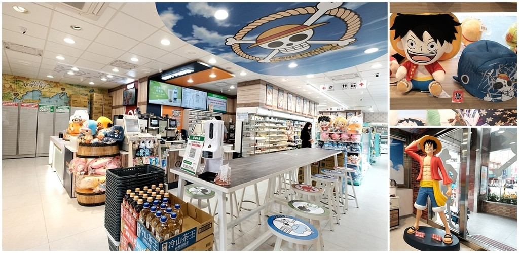 全台首間7-11航海王主題店於2022/03/25在桃園蘆竹正式開幕,店內被航海王故事造景圍繞,有1:1等身高的魯夫公仔,現場還有展售航海王限定商品。