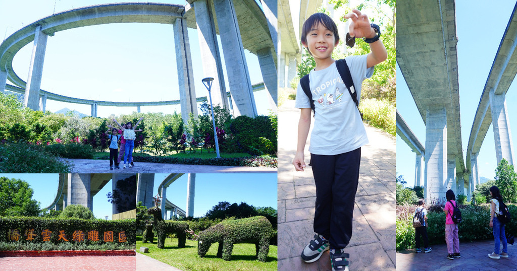 公路下方則利用庭園造景、花卉打造綠雕園區,於2022年1月開放參觀,讓遊客除了拍高架橋外,還多了散步休憩的場所。園區在高架橋下舖設散步步道,周邊則利用花卉、植栽等天然素材做裝飾,還有種植大量蜜源植物,每年4-5月進入賞蝶季,可以看到許多翩翩飛舞的蝴蝶。