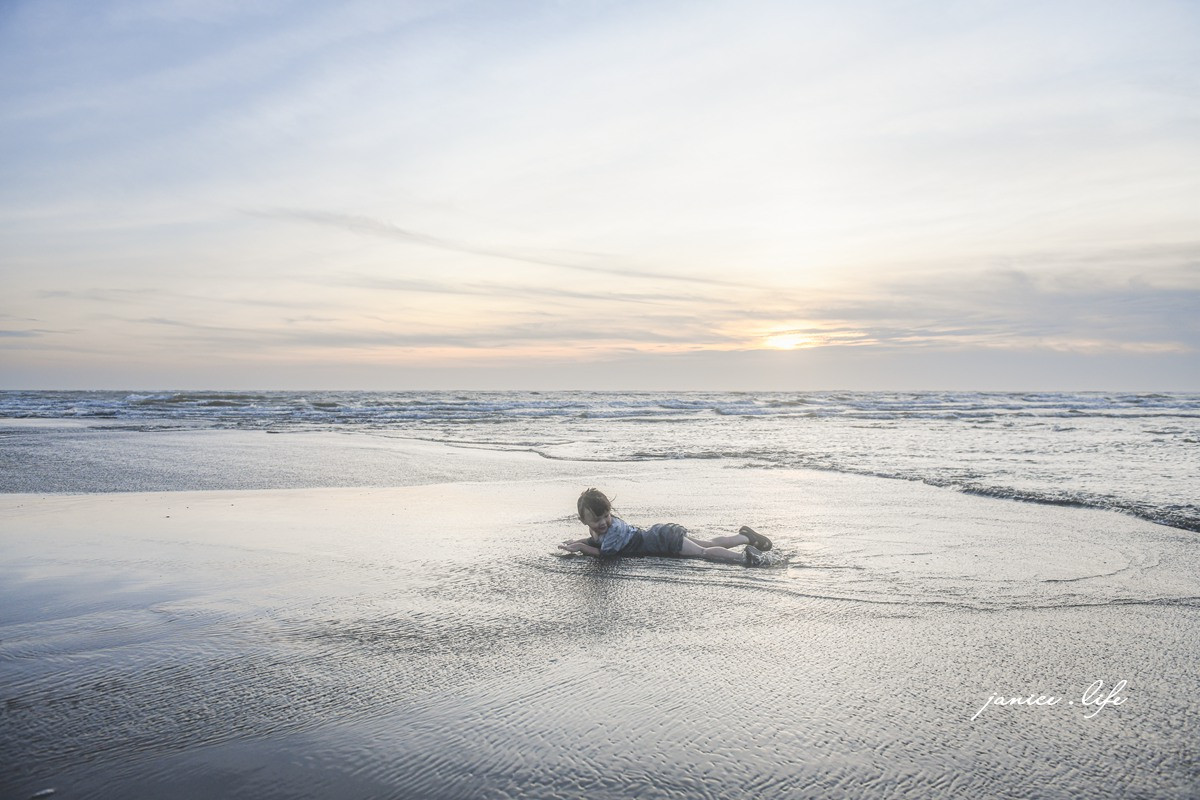 開車前來可直接將車子停在海堤外路旁,海堤前方是大大小小的礫石區,需先穿過礫石區才能到沙灘,建議穿著護趾膠鞋來保護雙腳。海灘區退潮後會露出大片沙灘與大大小小的水坑區,細緻的沙質是最好的挖沙區,記得帶上挖沙工具前來,才能玩的更盡興。