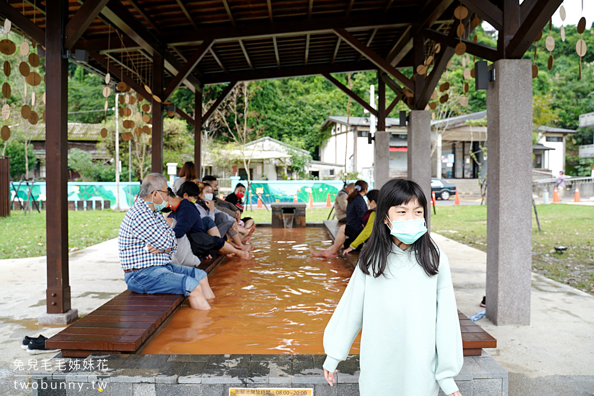 公園內的溫泉為富含鐵質的黃金之湯,因水中的鐵離子跟空氣結合氧化變成黃褐色,比較少見,可以帶小朋友來泡看看。另外,公園旁也有新開放的立體停車場,開車前來不用煩惱找停車位了。
