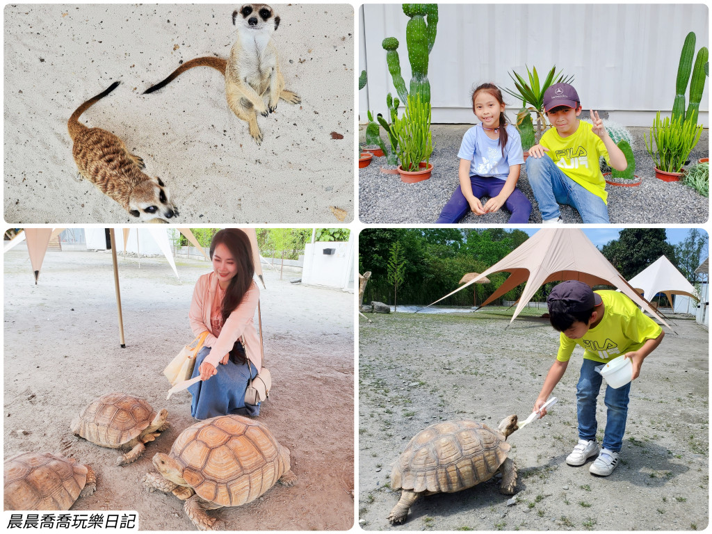 除了象龜自在走動外,還有近期最夯的萌寵-柯爾鴨,外型比一般鴨子圓短,更是可愛!入場門票含一份高麗菜,可以餵象龜與柯爾鴨吃。另一側半封閉空間養有狐獴與垂耳兔,門上有提供專屬飼料,可以直接拿起來餵牠們吃。